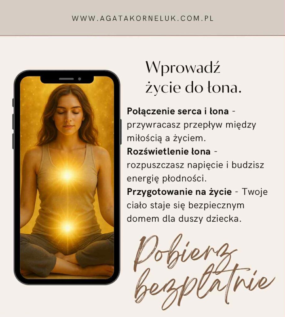 Dziś pracuję z kobietami, które są gotowe zamienić kontrolę na przepływ i presję na miłość, bo wiedzą, że droga do dziecka prowadzi przez ciało i podświadomość, a nie przez perfekcję i analizę. Łączę hipnozę, pracę z ciałem, regulację układu nerwowego i subtelną energetykę łona – tak, aby życie mogło znów przez kobietę płynąć. Nie uczę jak „starać się lepiej”. Uczę jak otwierać ciało na życie. Jeśli pragniesz ciąży i czujesz, że w środku jest napięcie, którego nie potrafisz już unieść – jesteś w miejscu, które rozumie to w pełni.